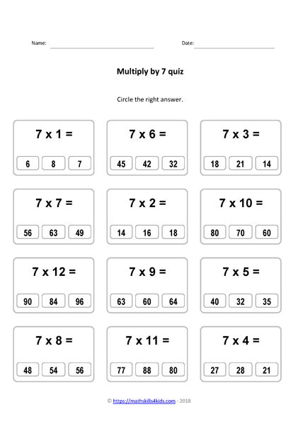 Worksheets Are Quick Quiz 7, Circle The Right, Quick Quiz 8, Multiplication Drill 7X Table, Name Date Multiplication.