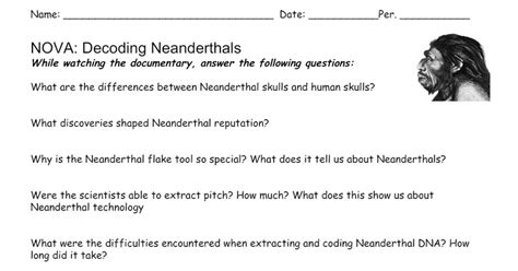 Nova Decoding Neanderthals Worksheet Answers. While watching the documentary, answer the following questions: (follow the link in the.