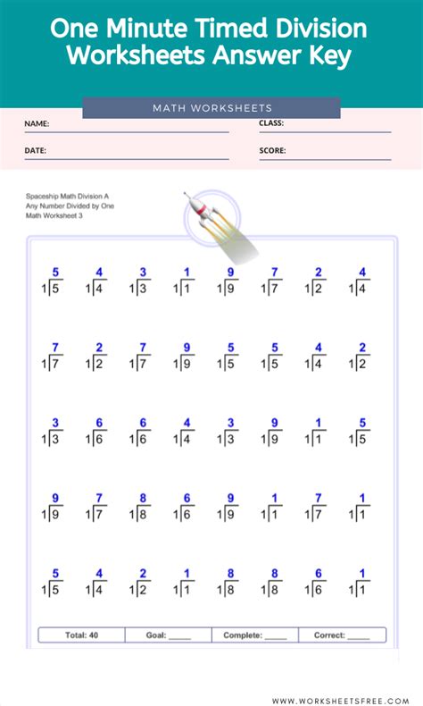 One Minute Timed Division Worksheet. Answer keys are included.what a. These division worksheets start with basic timed math fact drills in formats for one minute and two minute tests.
