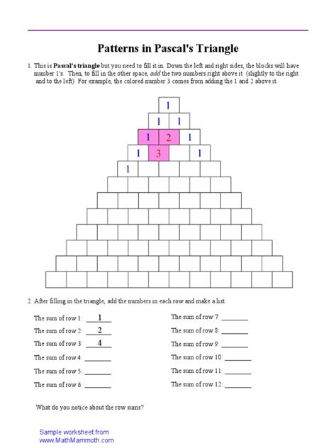 After filling in the triangle, add the. Web about this quiz & worksheet. This is pascal's triangle but you need to fill it in.