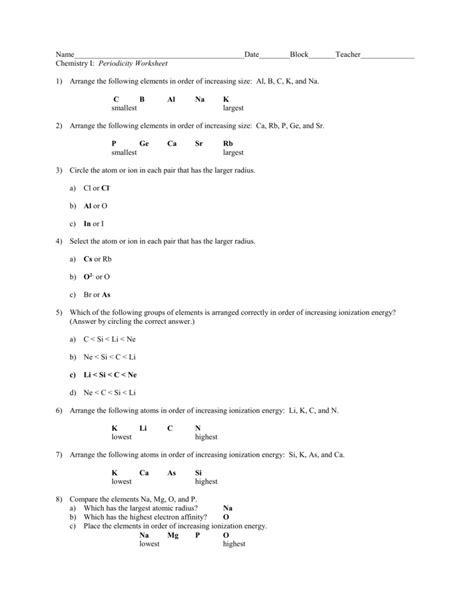 Web periodic properties worksheet key 1. Students will need to identify. Web practice periodicity with this worksheet bundle, complete with full answer keys on ionization energy, electronegativity, and atomic radius.